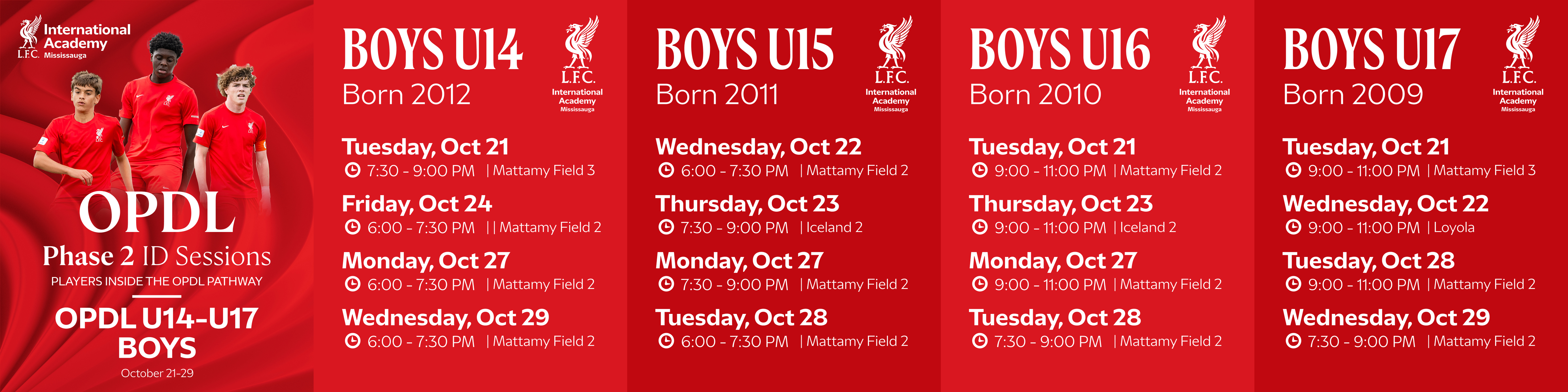 Players already inside the current OPDL pathway participating in LFC IA Mississauga’ or other OPDL Clubs | U14–U17 Boys